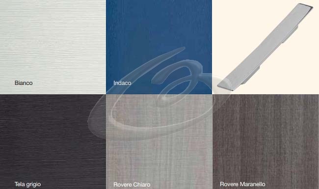 Tela Bianco, Indaco, Tela Grigio, Rovere Maranello e Rovere Chiaro.