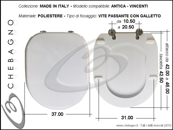 IMPORTANTE: Prima dell'acquisto controllare la corrispondenza delle misure della scheda tecnica con il sanitario.