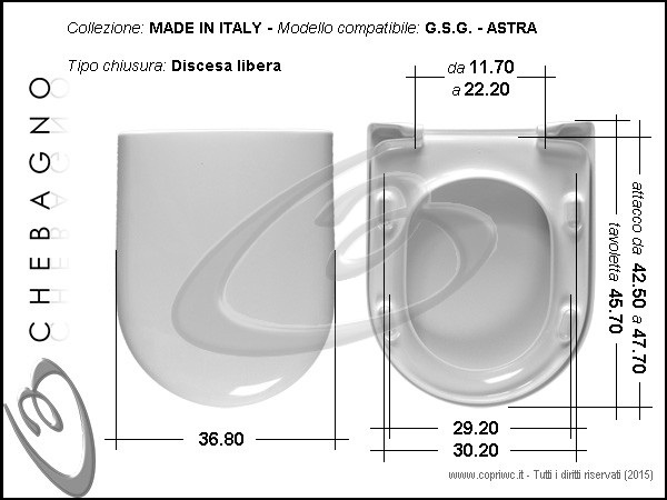 Chebagno non è in nessun modo associata né collabora con Gsg Ceramic Design Srl. Il copriwater proposto come indicato è compatibile e non originale.