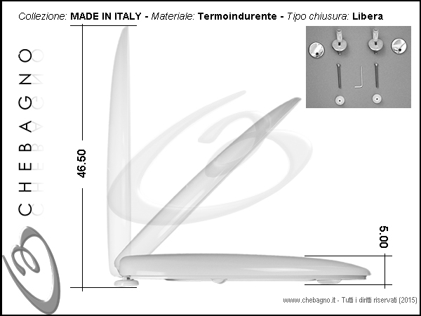 Materiale copriwater: Termoindurente (materiale che conferisce al prodotto durezza e resistenza nel tempo simile alla ceramica).