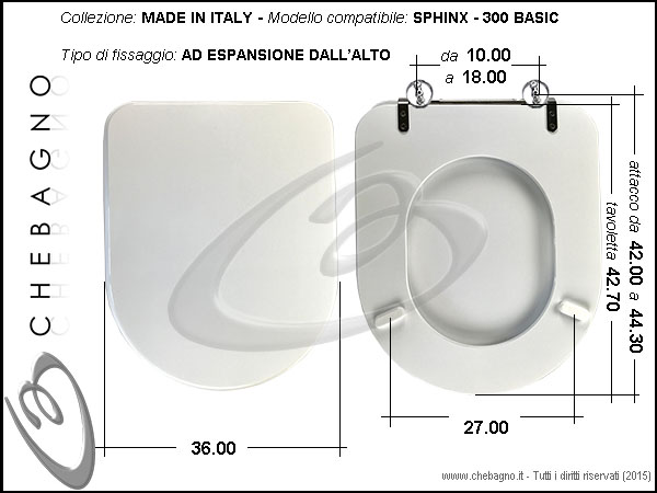 IMPORTANTE: Prima dell'acquisto controllare la corrispondenza delle misure della scheda tecnica con il sanitario.