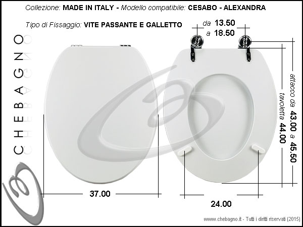 IMPORTANTE: Prima dell'acquisto controllare la corrispondenza delle misure della scheda tecnica con il sanitario.