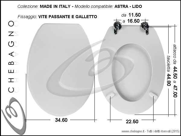 IMPORTANTE: Prima dell'acquisto controllare la corrispondenza delle misure della scheda tecnica con il sanitario.