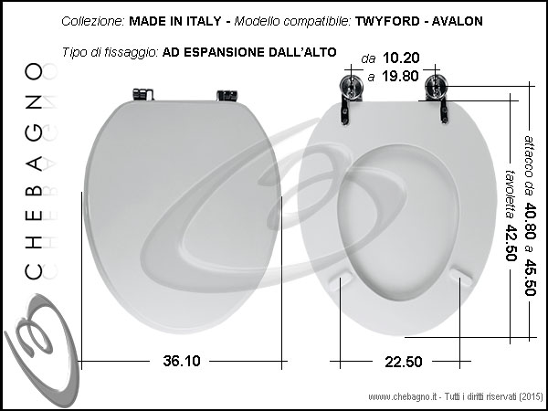 IMPORTANTE: Prima dell'acquisto controllare la corrispondenza delle misure della scheda tecnica con il sanitario.