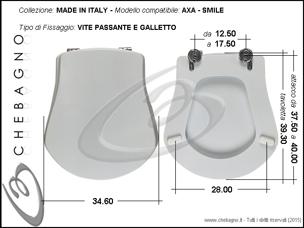 IMPORTANTE: Prima dell'acquisto controllare la corrispondenza delle misure della scheda tecnica con il sanitario.
