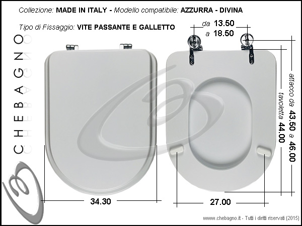 IMPORTANTE: Prima dell'acquisto controllare la corrispondenza delle misure della scheda tecnica con il sanitario.