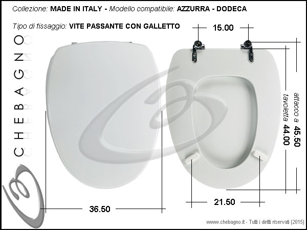 IMPORTANTE: Prima dell'acquisto controllare la corrispondenza delle misure della scheda tecnica con il sanitario.