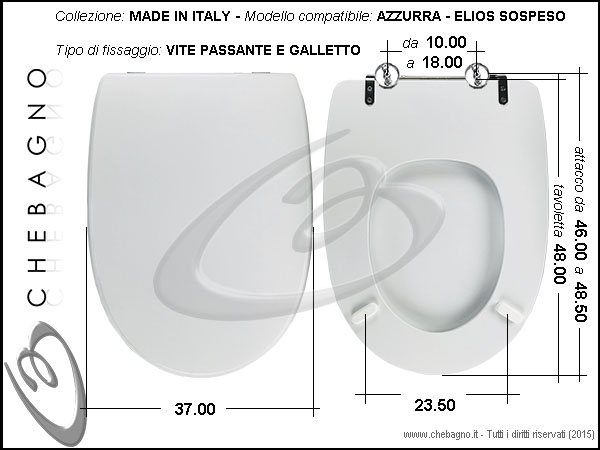 IMPORTANTE: Prima dell'acquisto controllare la corrispondenza delle misure della scheda tecnica con il sanitario.