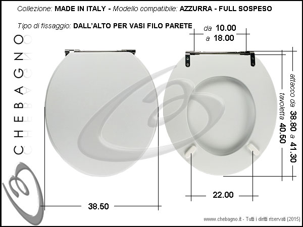 COPRIWATER AZZURRA FULL SOSPESO (FUL/100 SOSP) - DISPONIBILE IN 63 COLORI - MADE IN ITALY