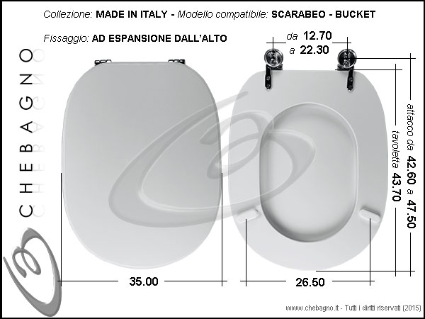 IMPORTANTE: Prima dell'acquisto controllare la corrispondenza delle misure della scheda tecnica con il sanitario.