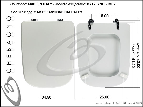 IMPORTANTE: Prima dell'acquisto controllare la corrispondenza delle misure della scheda tecnica con il sanitario.