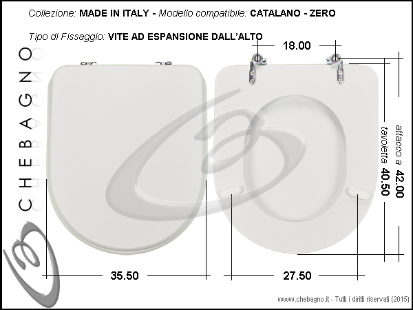 IMPORTANTE: Prima dell'acquisto controllare la corrispondenza delle misure della scheda tecnica con il sanitario.
