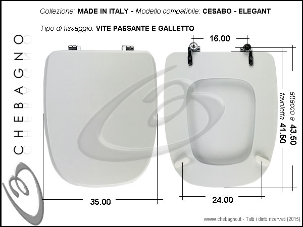 IMPORTANTE: Prima dell'acquisto controllare la corrispondenza delle misure della scheda tecnica con il sanitario.
