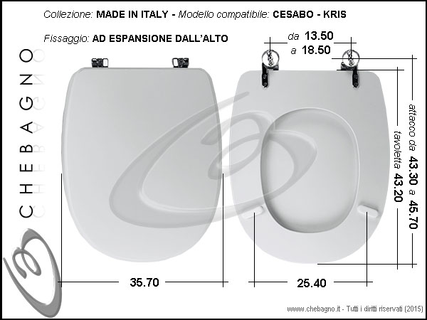 IMPORTANTE: Prima dell'acquisto controllare la corrispondenza delle misure della scheda tecnica con il sanitario.