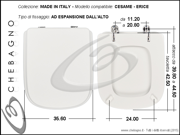 IMPORTANTE: Prima dell'acquisto controllare la corrispondenza delle misure della scheda tecnica con il sanitario.