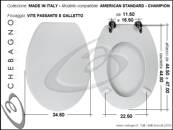 CHAMPION AMERICAN STANDARD - Disponibile in 63 Colori + Essenze in Legno + Made in Italy. Chiusura: Soft Close o Libera. Qualità TOP. Copriwater compreso di cerniere e paracolpi.