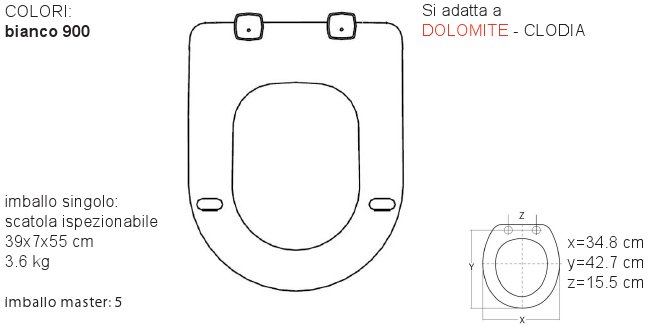 IMPORTANTE: Prima dell'acquisto controllare la corrispondenza delle misure della scheda tecnica con il sanitario. X = Larghezza; Y = Profondità; Z = Interasse Cerniere