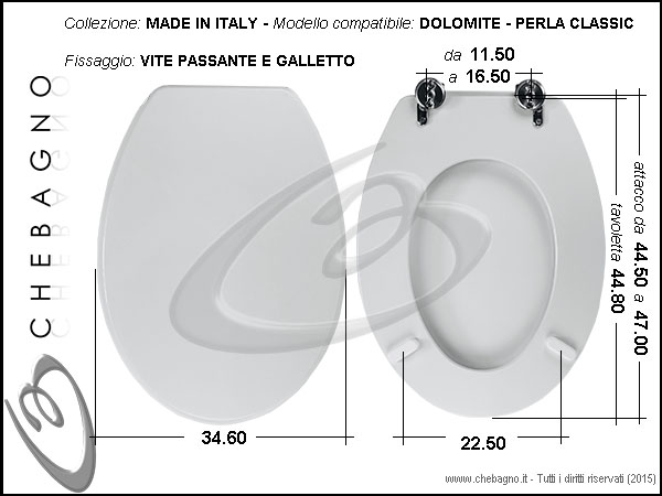 IMPORTANTE: Prima dell'acquisto controllare la corrispondenza delle misure della scheda tecnica con il sanitario.