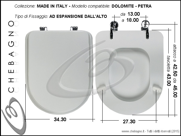 IMPORTANTE: Prima dell'acquisto controllare la corrispondenza delle misure della scheda tecnica con il sanitario.