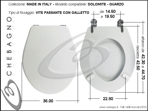 IMPORTANTE: Prima dell'acquisto controllare la corrispondenza delle misure della scheda tecnica con il sanitario.