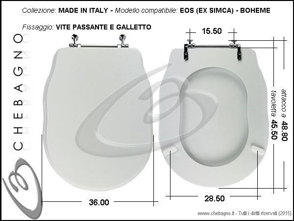 IMPORTANTE: Prima dell'acquisto controllare la corrispondenza delle misure della scheda tecnica con il sanitario.