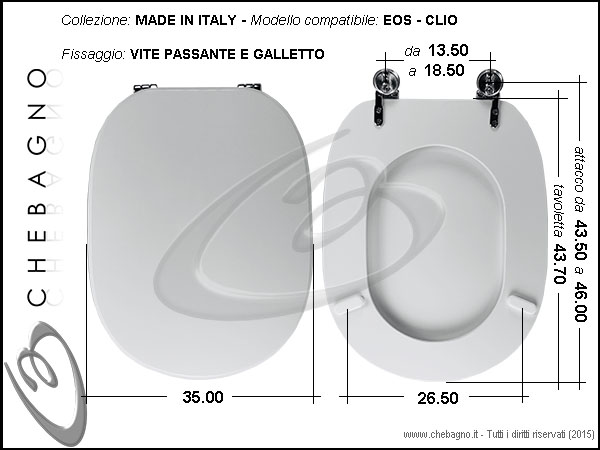 IMPORTANTE: Prima dell'acquisto controllare la corrispondenza delle misure della scheda tecnica con il sanitario.