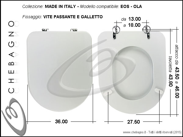 IMPORTANTE: Prima dell'acquisto controllare la corrispondenza delle misure della scheda tecnica con il sanitario.