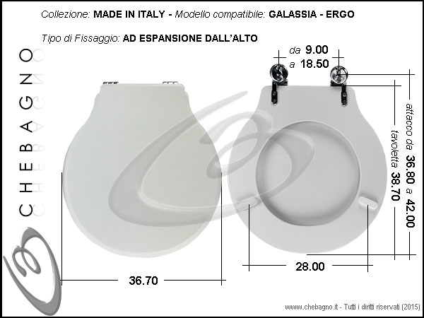 IMPORTANTE: Prima dell'acquisto controllare la corrispondenza delle misure della scheda tecnica con il sanitario.