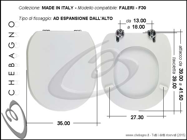 IMPORTANTE: Prima dell'acquisto controllare la corrispondenza delle misure della scheda tecnica con il sanitario.