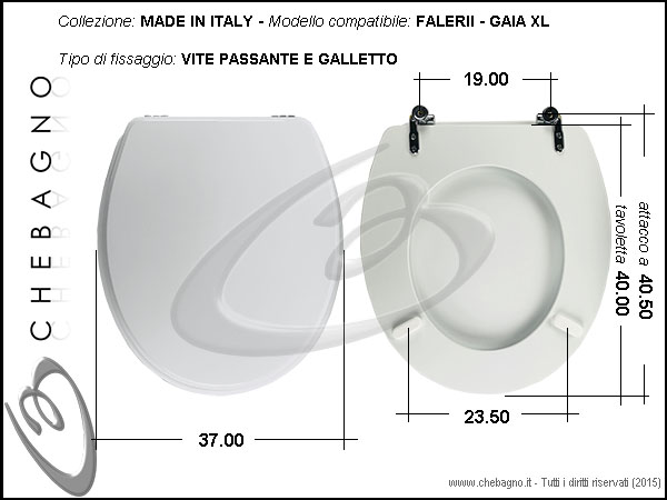 IMPORTANTE: Prima dell'acquisto controllare la corrispondenza delle misure della scheda tecnica con il sanitario.