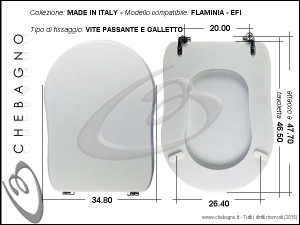 COPRIWATER FLAMINIA EFI - Disponibile in 63 Colori + Essenze in Legno + Made in Italy. Qualità TOP. Copriwater compreso di cerniere e paracolpi.