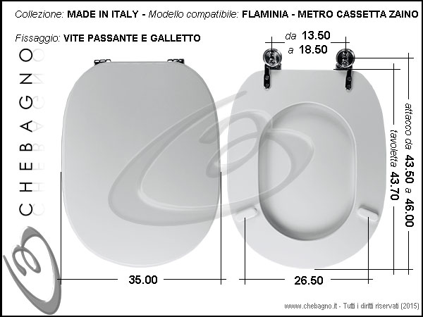 IMPORTANTE: Prima dell'acquisto controllare la corrispondenza delle misure della scheda tecnica con il sanitario.