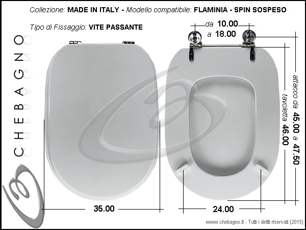 IMPORTANTE: Prima dell'acquisto controllare la corrispondenza delle misure della scheda tecnica con il sanitario.