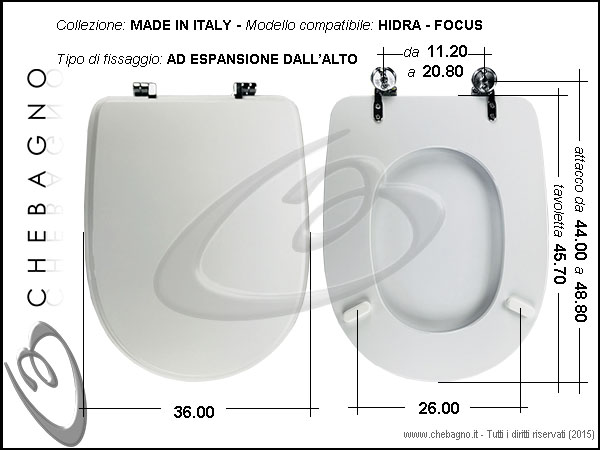 IMPORTANTE: Prima dell'acquisto controllare la corrispondenza delle misure della scheda tecnica con il sanitario.