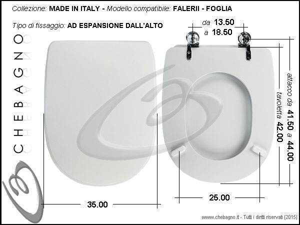 IMPORTANTE: Prima dell'acquisto controllare la corrispondenza delle misure della scheda tecnica con il sanitario.