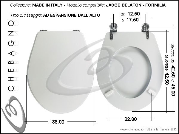 IMPORTANTE: Prima dell'acquisto controllare la corrispondenza delle misure della scheda tecnica con il sanitario.