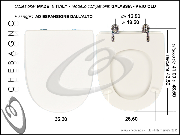 IMPORTANTE: Prima dell'acquisto controllare la corrispondenza delle misure della scheda tecnica con il sanitario.