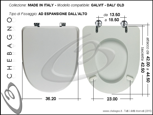 IMPORTANTE: Prima dell'acquisto controllare la corrispondenza delle misure della scheda tecnica con il sanitario.