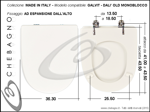 IMPORTANTE: Prima dell'acquisto controllare la corrispondenza delle misure della scheda tecnica con il sanitario.