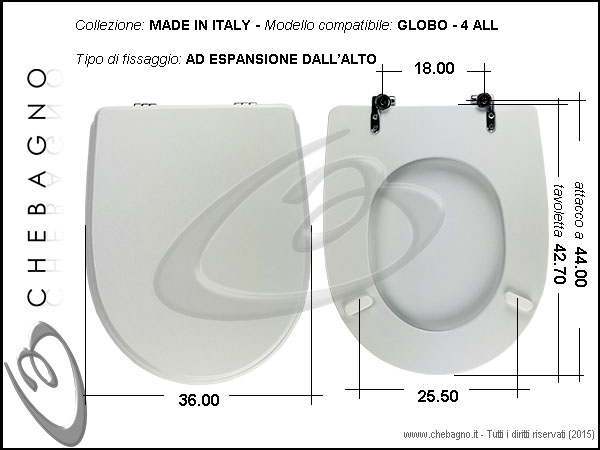 IMPORTANTE: Prima dell'acquisto controllare la corrispondenza delle misure della scheda tecnica con il sanitario.