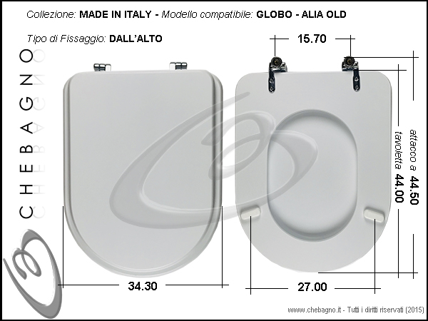COPRIWATER GLOBO ALIA OLD - Disponibile in 63 Colori + Essenze in Legno + Made in Italy. Qualità TOP. Copriwater compreso di cerniere e paracolpi.