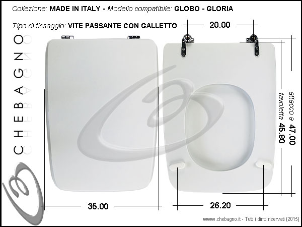 IMPORTANTE: Prima dell'acquisto controllare la corrispondenza delle misure della scheda tecnica con il sanitario.