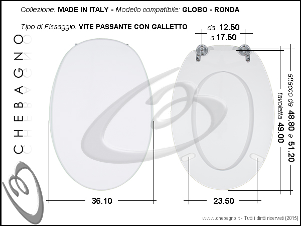 IMPORTANTE: Prima dell'acquisto controllare la corrispondenza delle misure della scheda tecnica con il sanitario.