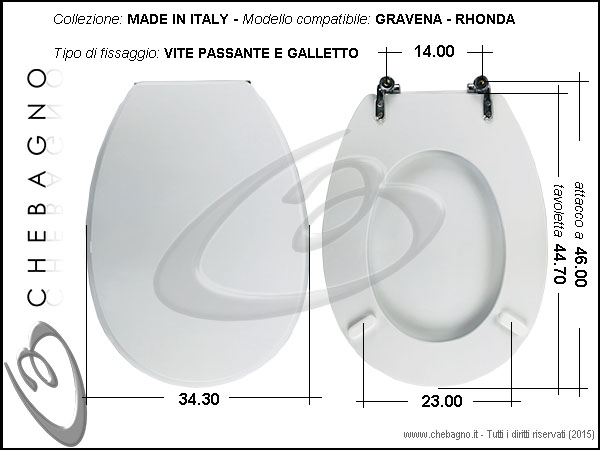 IMPORTANTE: Prima dell'acquisto controllare la corrispondenza delle misure della scheda tecnica con il sanitario.