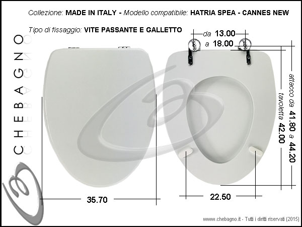 IMPORTANTE: Prima dell'acquisto controllare la corrispondenza delle misure della scheda tecnica con il sanitario.