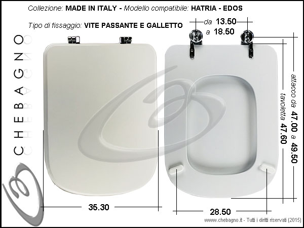 IMPORTANTE: Prima dell'acquisto controllare la corrispondenza delle misure della scheda tecnica con il sanitario.