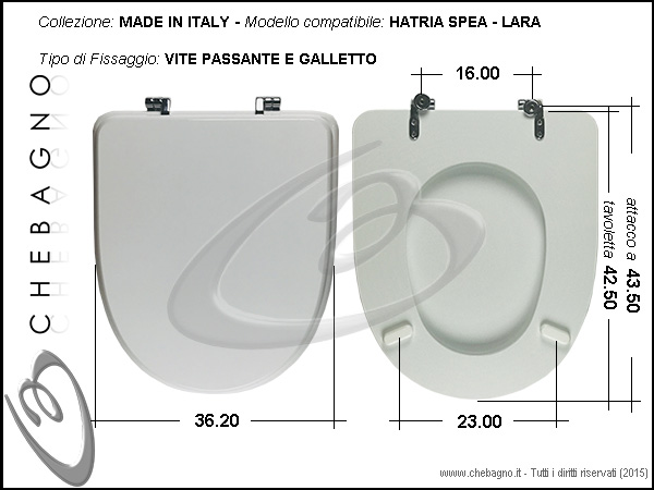 IMPORTANTE: Prima dell'acquisto controllare la corrispondenza delle misure della scheda tecnica con il sanitario.