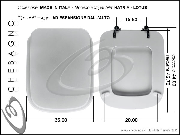IMPORTANTE: Prima dell'acquisto controllare la corrispondenza delle misure della scheda tecnica con il sanitario.