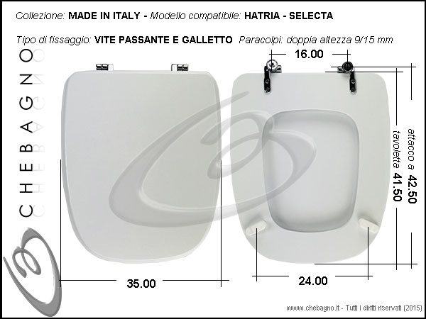 IMPORTANTE: Prima dell'acquisto controllare la corrispondenza delle misure della scheda tecnica con il sanitario.