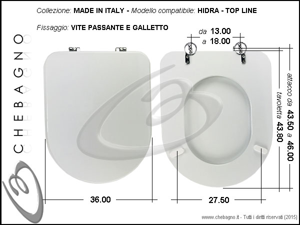 IMPORTANTE: Prima dell'acquisto controllare la corrispondenza delle misure della scheda tecnica con il sanitario.